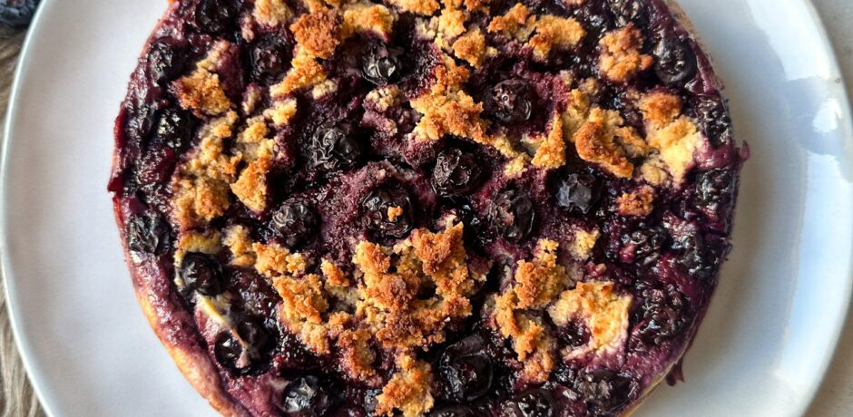 Bestreiche es danach mit der geschmolzenen Halbfettbutter und streue das Puder-Erythrit mit Hilfe eines Siebes darüber. Fertig!