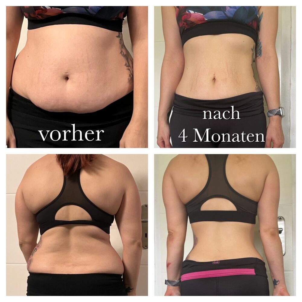 Insgesamt hat zeigt die Waage jetzt nach 12 Wochen 11,5 kg weniger und ich bin soweit sehr zufrieden. Mein Ziel ist es jetzt meinen Bauch noch etwas stärker zu definieren und auch weiterhin zu versuchen meinen Stress zu reduzieren. Denn nach wie vor habe ich Phasen, in denen ich sehr traurig bin und mich zusammenreissen muss nicht nach Essen zu greifen. Aber ich gebe mir Mühe stark zu bleiben!